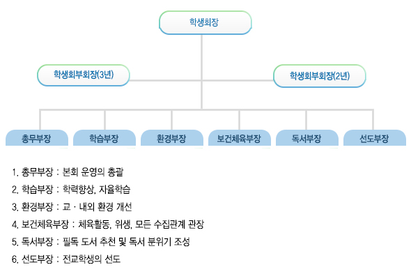 1. 전교학생회 개최 : 사천중 학생들을 대표하여 사천중학교에 필요한 자치법정, 학생복지, 자기 주도적