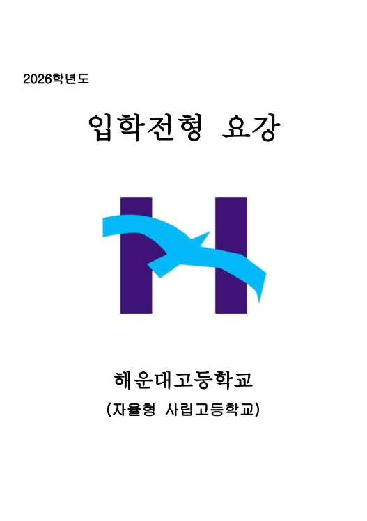 2026학년도 해운대고등학교(자율형 사립고) 입학전형 안내