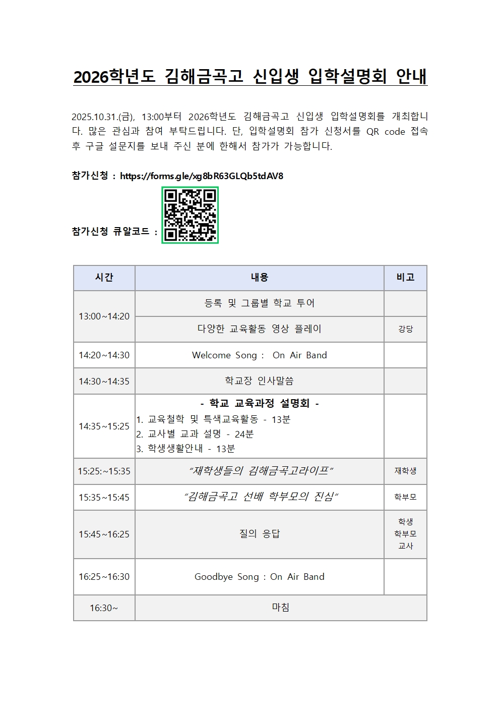 김해금곡고등학교_2026. 김해금곡고등학교 신입생 입학설명회(발송).hwp
